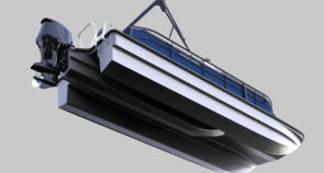 This is a fiberglass pontoon boat.